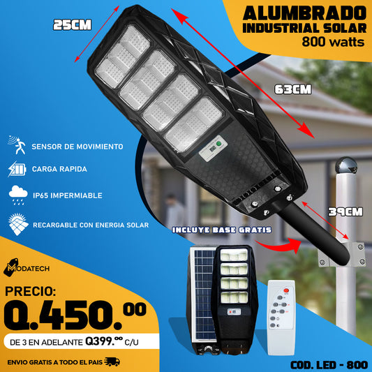 Alumbrados Solares Profesionales Industriales con Panel solar 800 watts