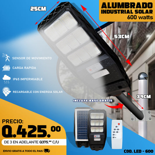 Alumbrado led con panel solar - 600 watts