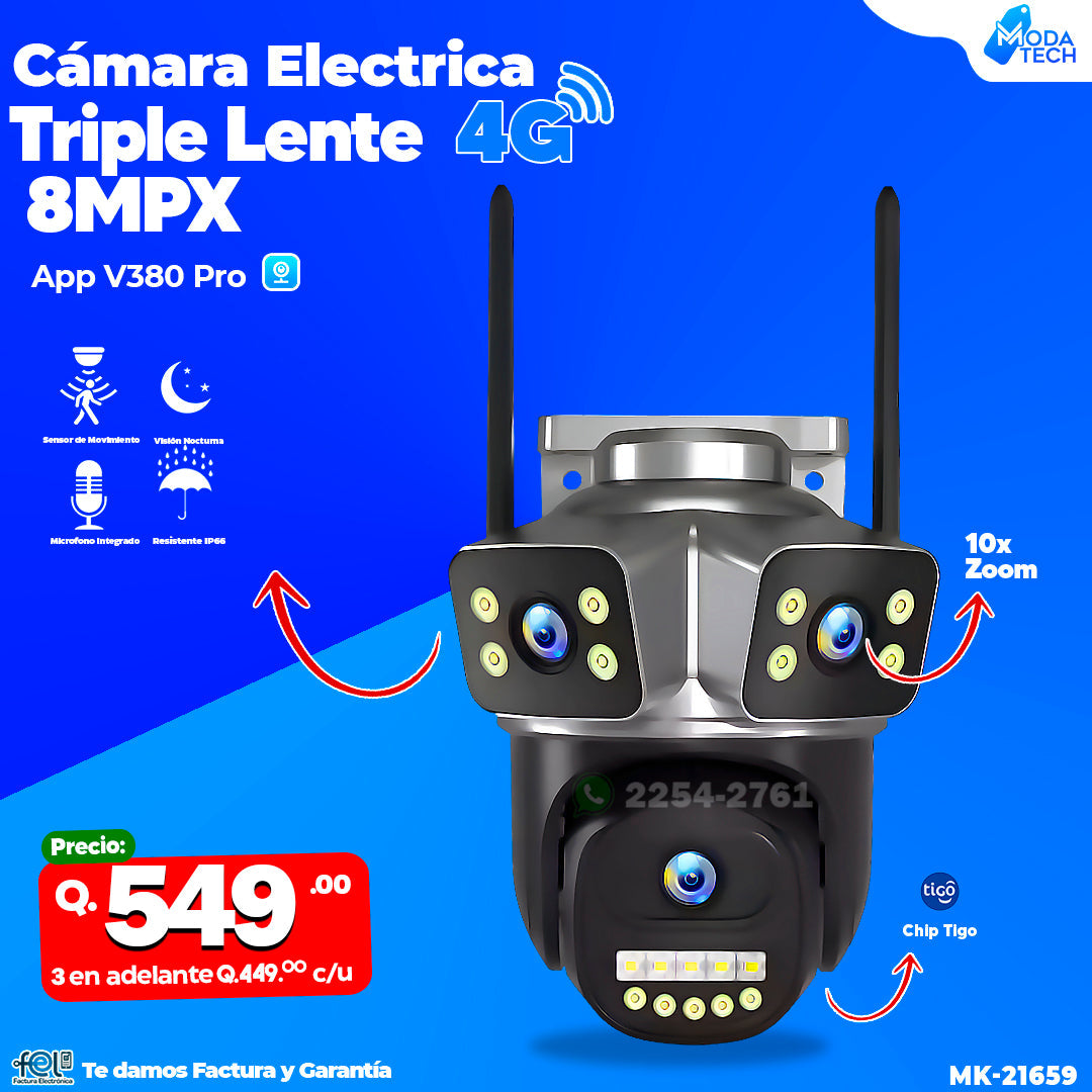 Cámara electrica chip 4G de 8MPX