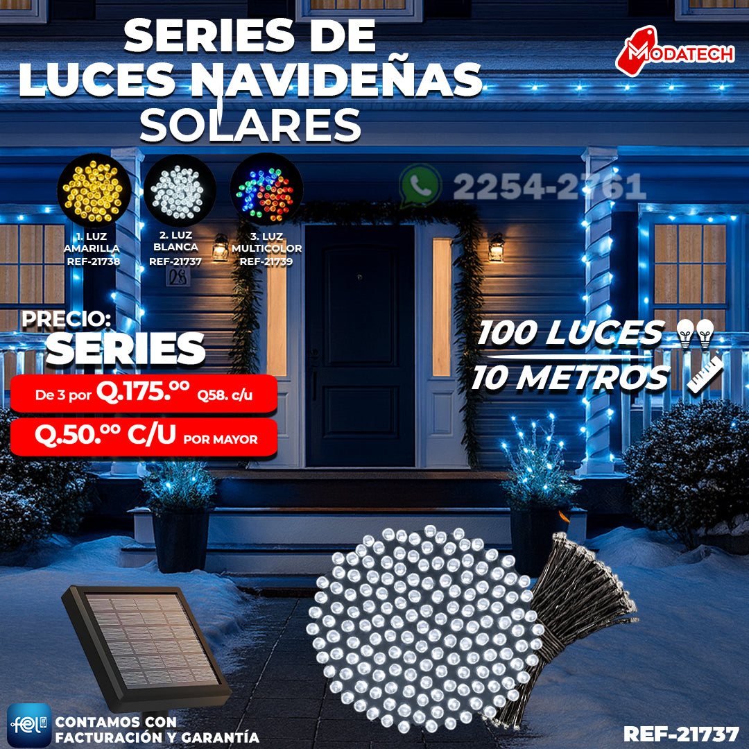 Dale brillo y elegancia a tu hogar esta temporada con las Series de Luces Navideñas Solares de 100 luces, diseñadas por ModaTech Guatemala.